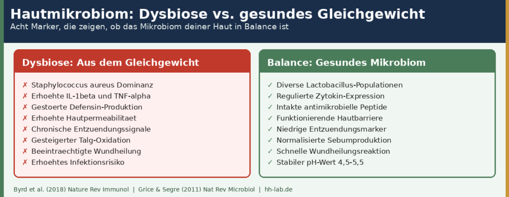 Byrd et al. (2018) betonten in ihrer Übersichtsarbeit in Nature Reviews Immunology, dass Dysbiose nicht nur Symptom, sondern aktiver Treiber von Hauterkrankungen ist — und dass die Wiederherstellung des mikrobiellen Gleichgewichts ein legitimes therapeutisches Ziel darstellt.[2]